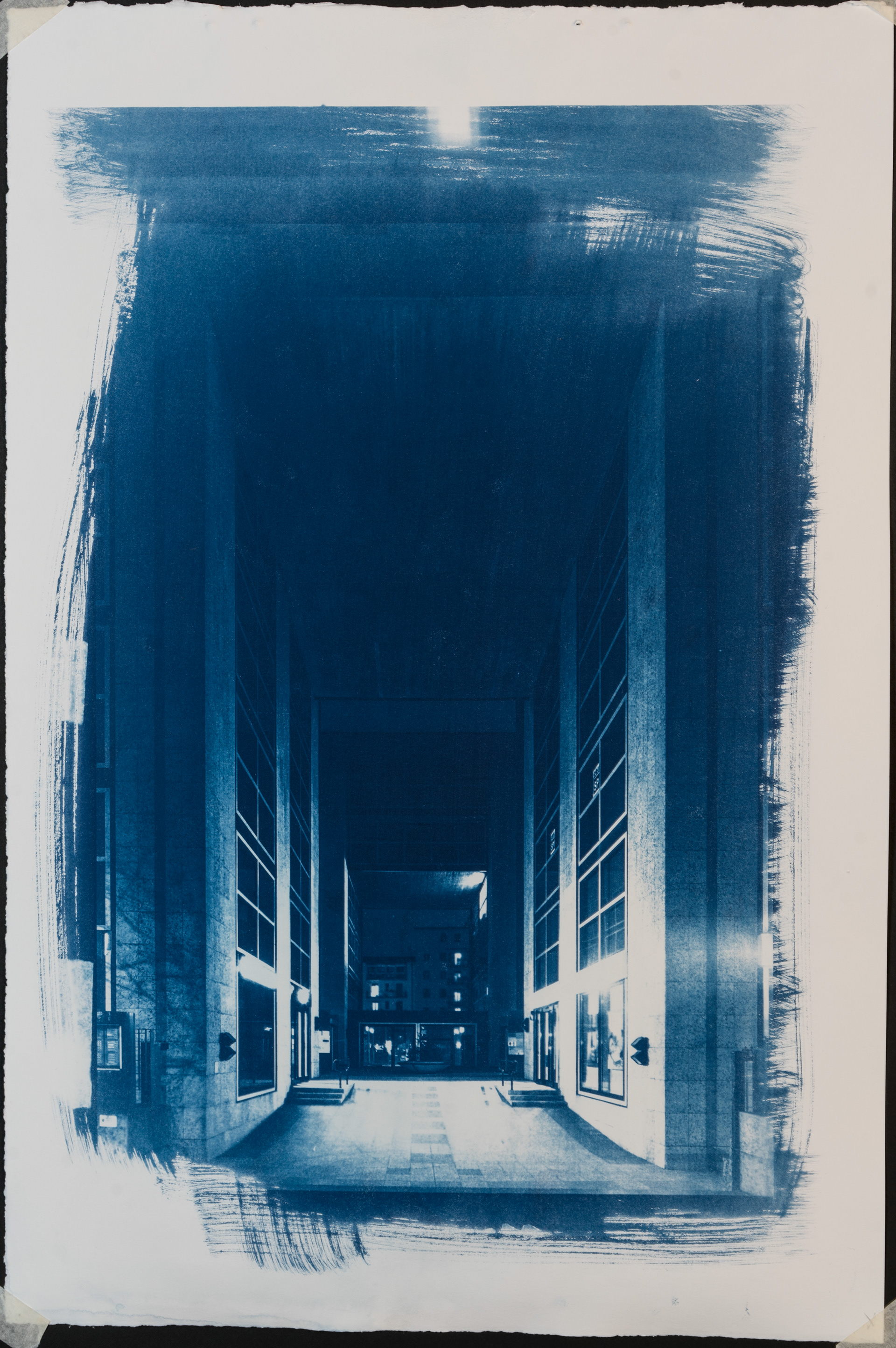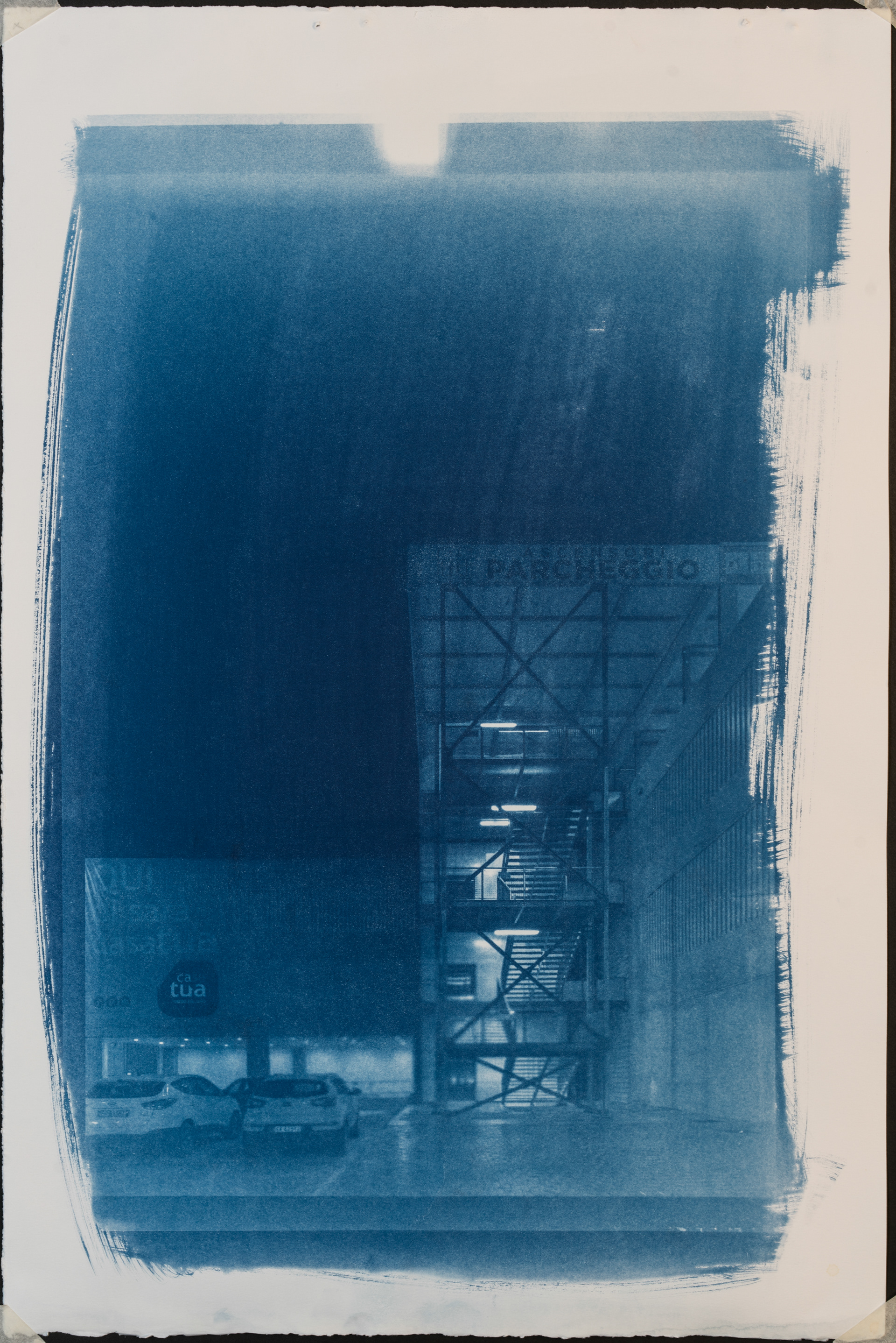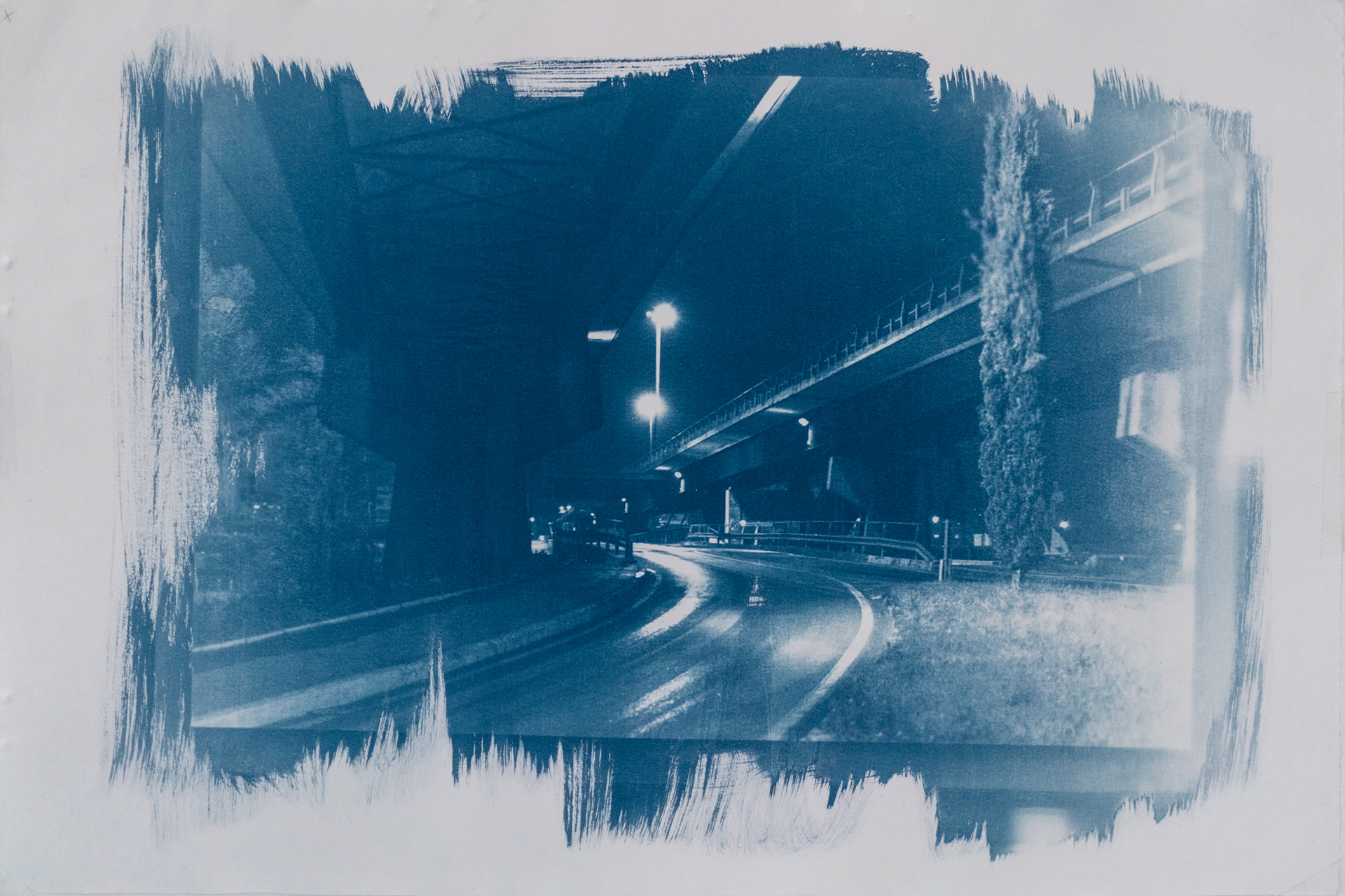 The focal points of this work are the printing process and the production time of the images, from the idea to the final print. The uniqueness of the photos as prints is given to the visible signs left by the photographer during the cyanotype process.